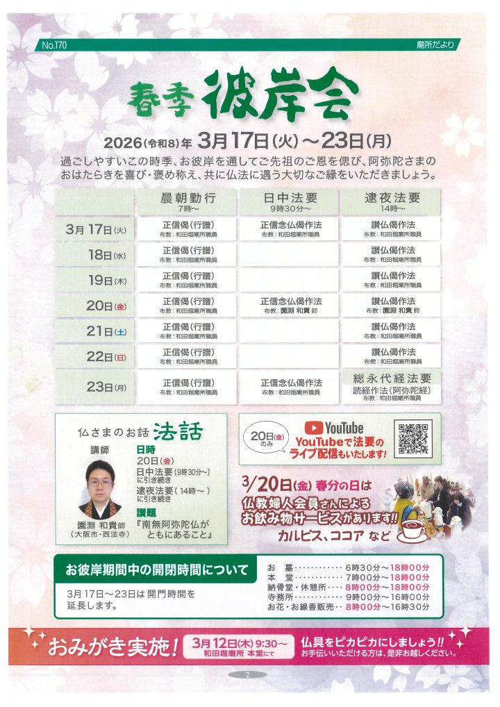 2026年春季彼岸会〈3/17(火)-3/23(月)〉